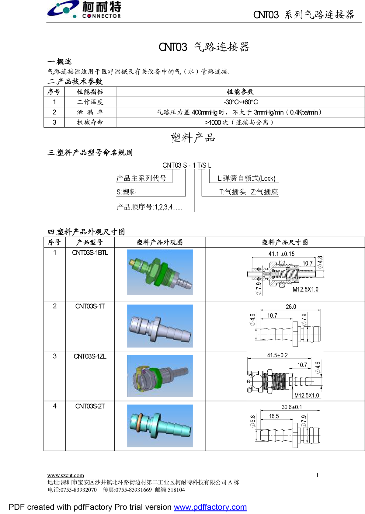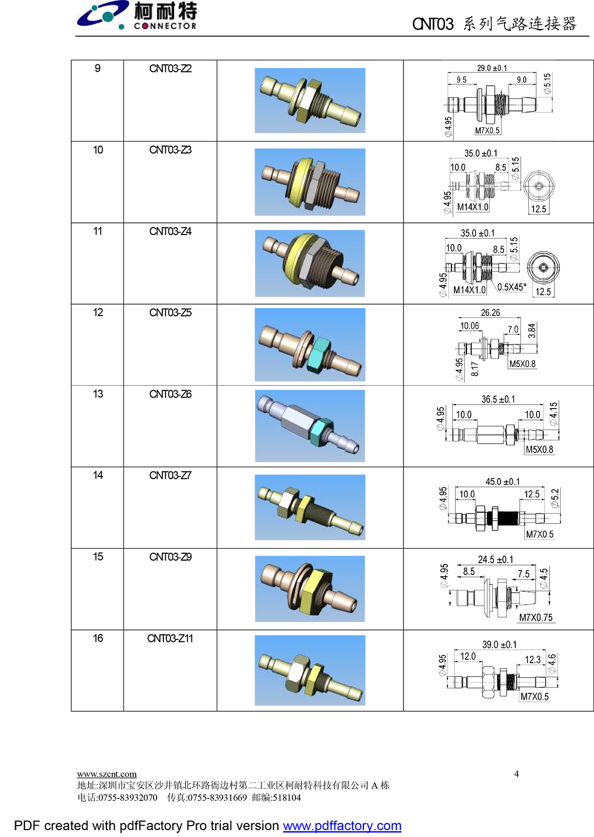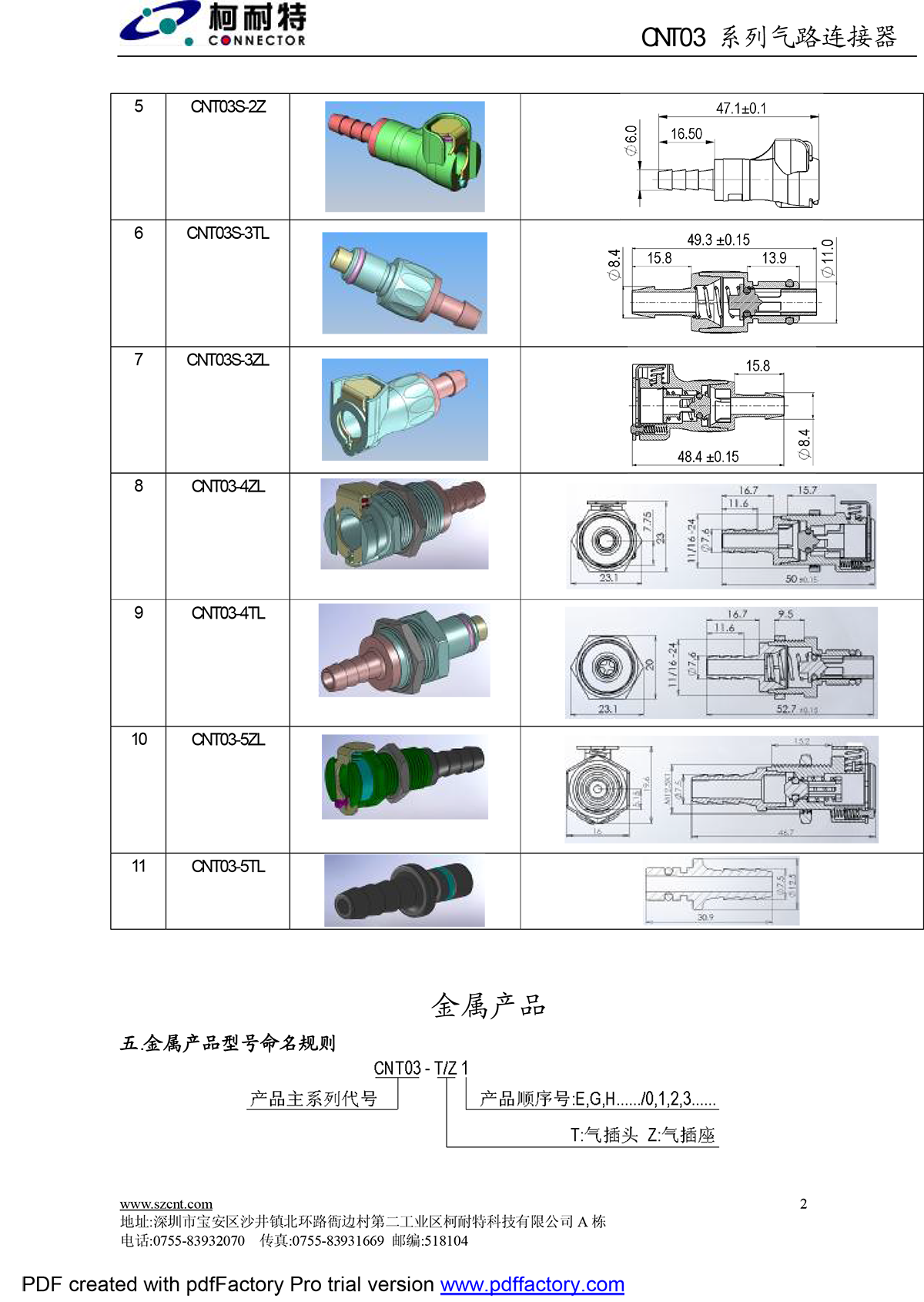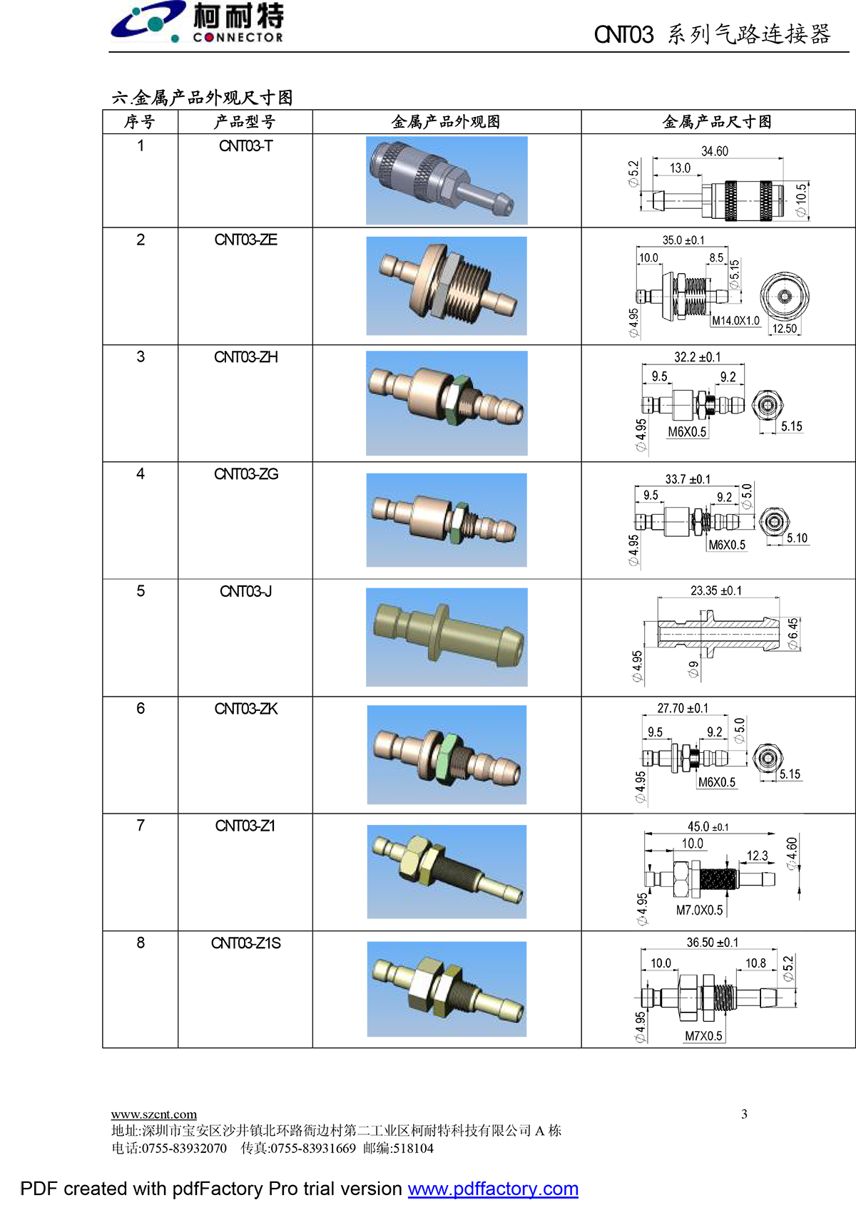 SZCNT03 Series Metal Pneumatic Connector